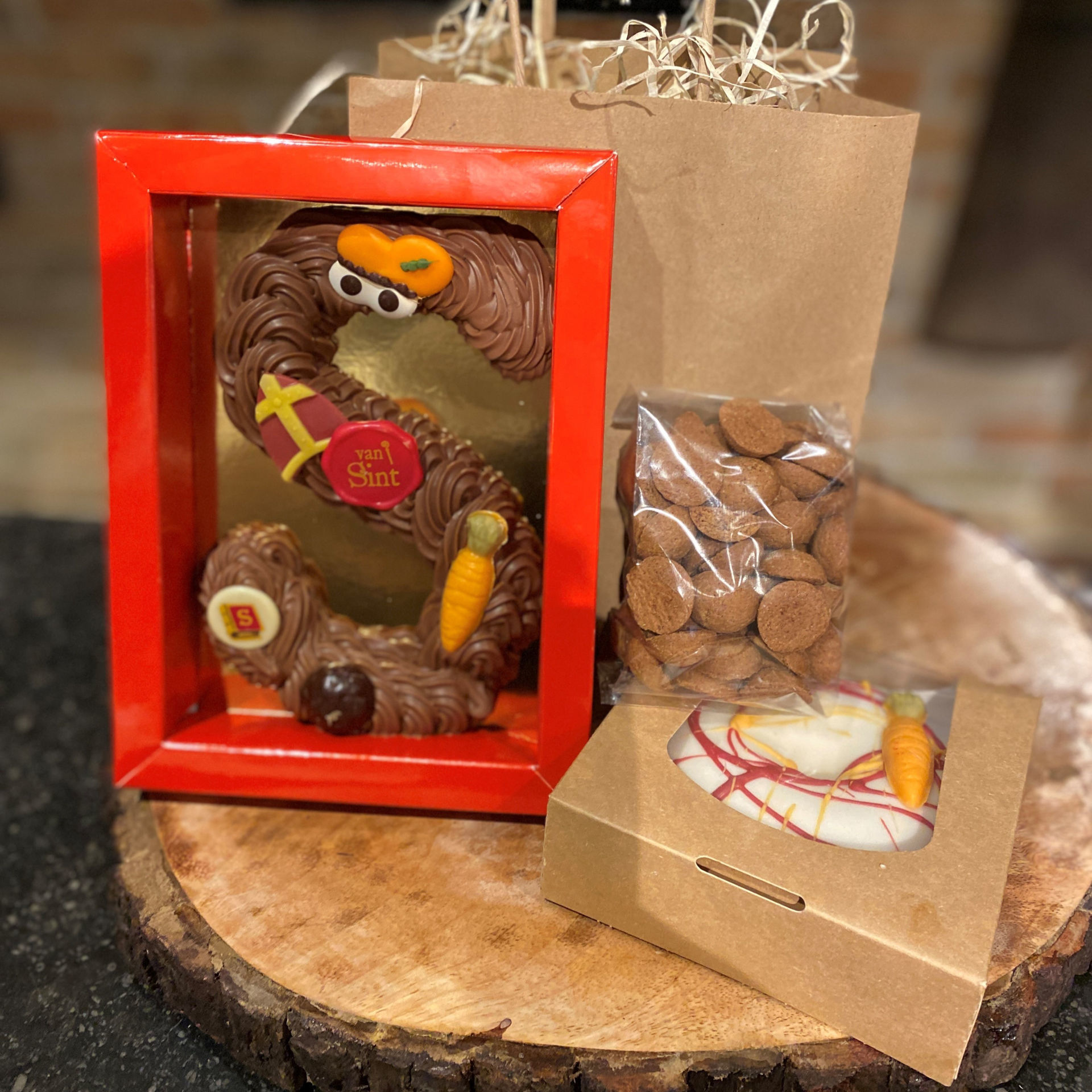 Tasje gevuld met: - Chocolade letter - 1 luxe opgemaakte Sint donut - kruidnoten 100 gram