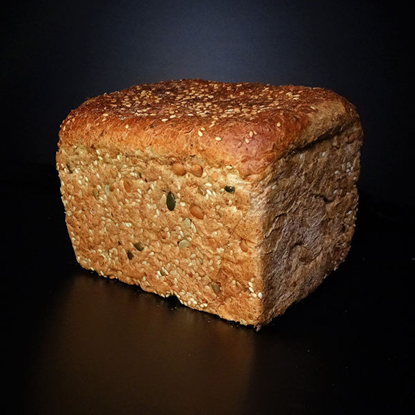 volkorentarwemeel, water, tarwebloem, roggebloem, zonnebloempitten, lijnzaad, sojanuts, pompoenpitten, tarwegluten, sojagrits, sesamzaad (ongepeld), havervlokken, gist, bakkerszout, plantaardige olie(raapzaad), geîactiveerdroggedesem (gedroogd), suiker, roggemoutmeel, gerstemoutmeel, sesamzaad (gepeld), lupinemeel, suiker (gebrand), specerijen, enzymen, tarwemout, emulgator(mono- en diglyceriden van vetzuren veresterd met mono- en diacetylwijnsteenzuur), meelverbeteraar(L-cysteîe)